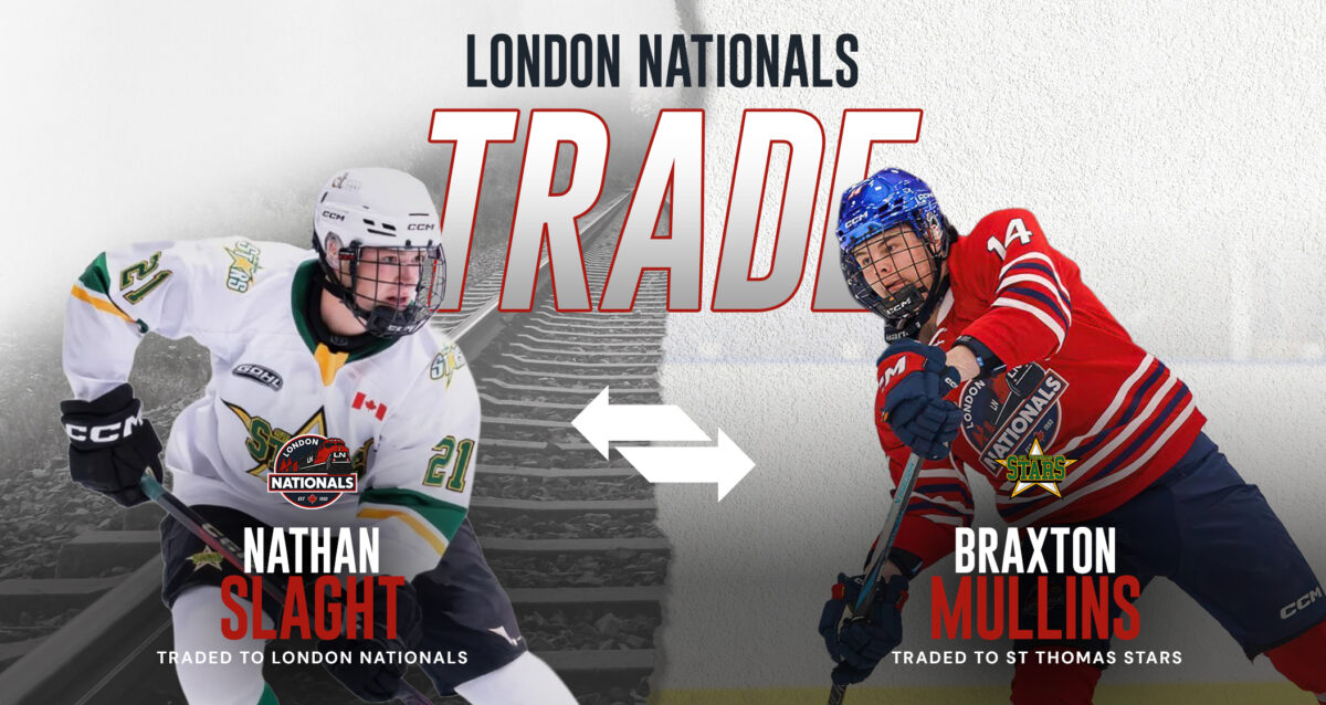 The London Nationals completed a trade with the St. Thomas Stars, acquiring forward Nathan Slaght in exchange for forward Braxton Mullins. Slaght, 18, hails from Denfield, Ontario and joins the […]